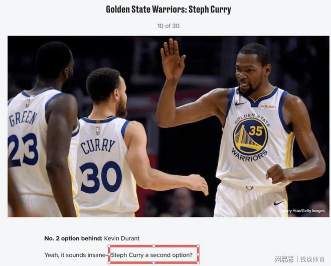 有无争议?美媒BR评队史最佳二当家时将库里作为杜兰特二当家
